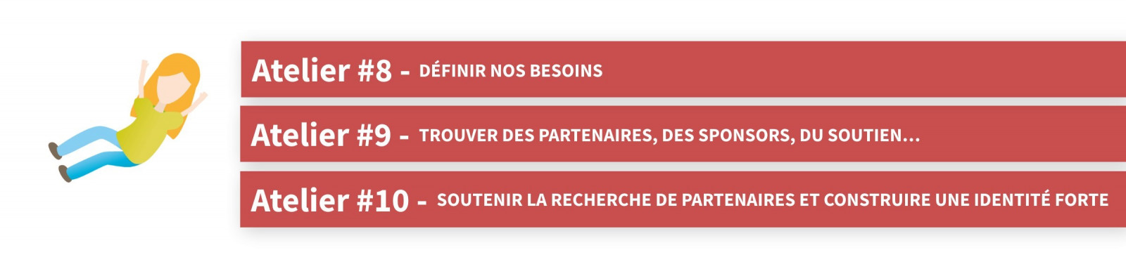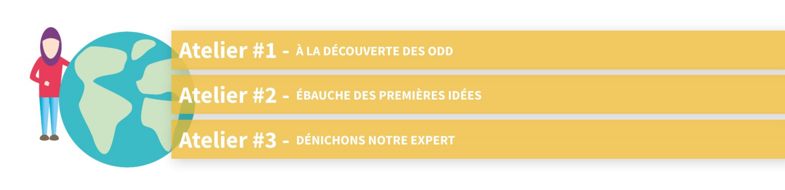 Futur Défi se divise en cinq grandes étapes elles-mêmes divisées en ateliers.